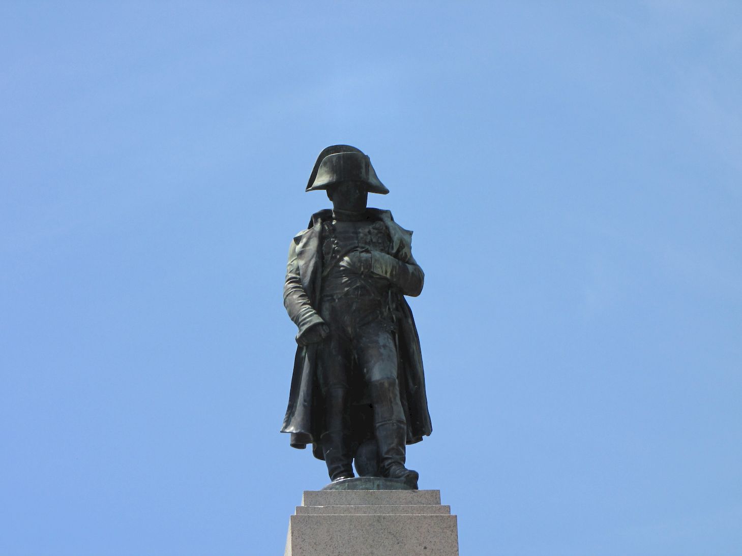 L’empereur est vêtu de sa redingote et coiffé de son bicorne. En bas, deux aigles indiquent ses dates de naissance et de décès. Elle est l’œuvre du sculpteur Seurre en 1938. Sur la gauche, se trouve la grotte dans laquelle, le jeune Bonaparte venait se retrancher pour réfléchir.