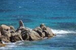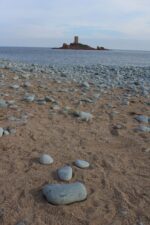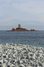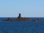 Dés que l’on quitte la ville vers l’est, le début de la ballade est marquée par l’île d’or, face à la plage du Dramont. C’est en 1897 qu’elle fut acquise par un architecte, mais c’est un certain docteur Auguste Lutaud qui en devient le nouveau propriétaire quelques années plus tard, lors d’une partie de cartes. Il y fait ériger une tour carrée suite à son auto-proclamation « Auguste 1er » souverain de l’île.