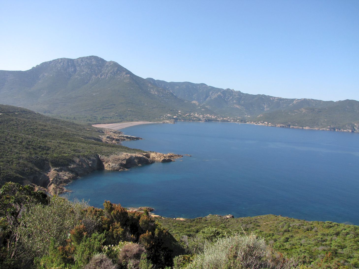 C'est par la départementale d81 bis qui longe la mer que nous poursuivons notre descente vers le sud en passant par le centre. Cette Etape sera certainement la plus riche en décors car nous allons passer de la mer turquoise à la montagne et même aux sommets enneigés. Nous allons aussi passer pour la première fois en corse du sud. Au fait vous savez pourquoi 2A et 2B ? (2a Ajaccio et 2b Bastia)