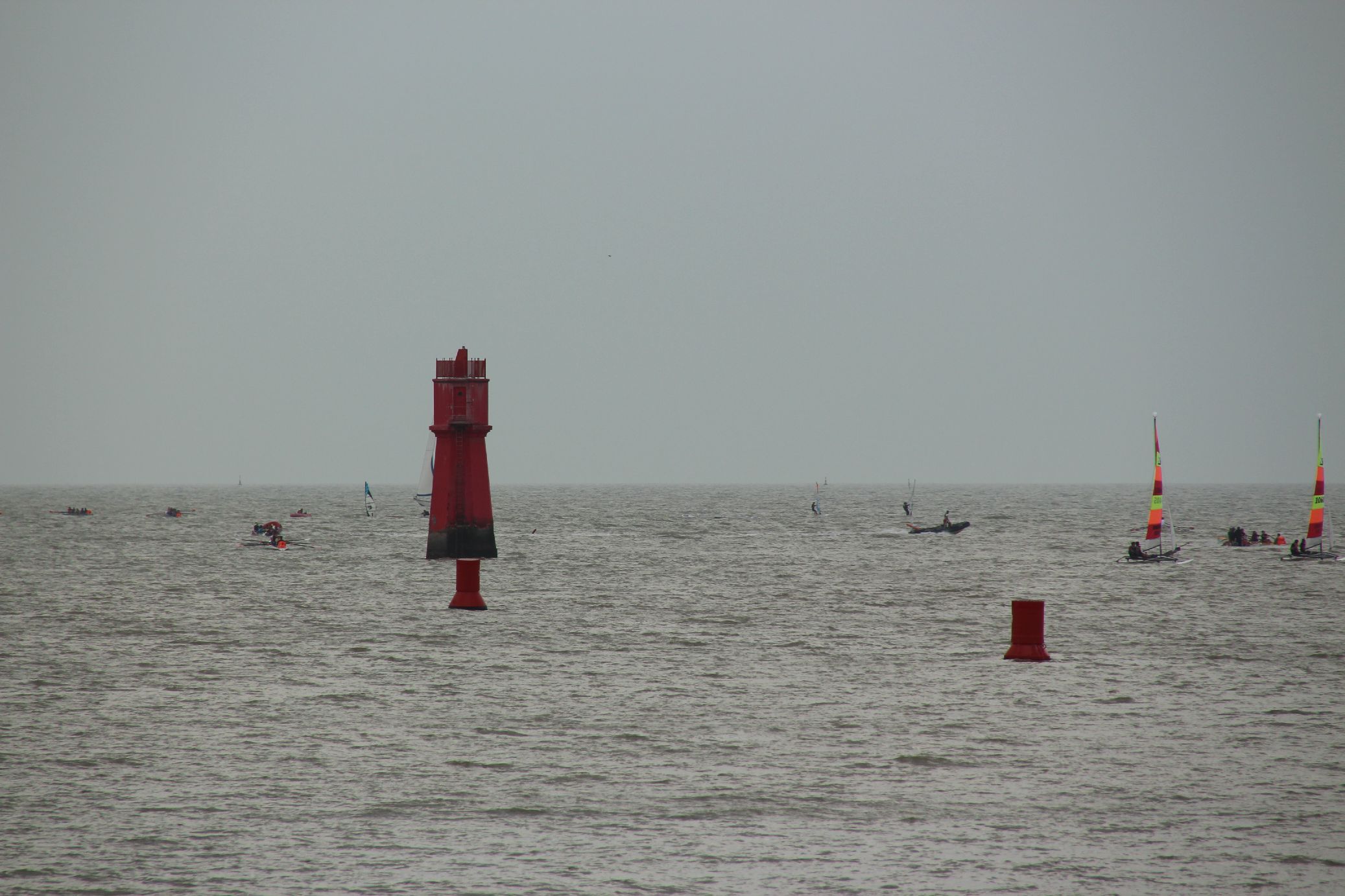 le premier, lanterne rouge avec en dessous trois carrés rouges peints, se situe proche de la tour Saint-Nicolas (la plus grande des deux tours de La Rochelle)