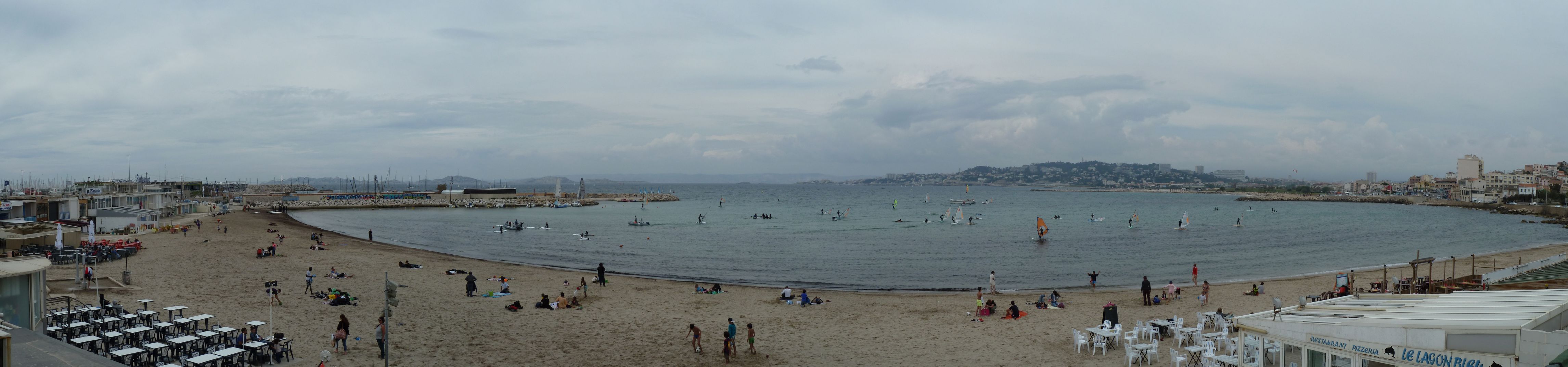 Après les plages du Prado et la Pointe Rouge, on arrive sur le port de la Madrague qui a la particularité d’offrir une plage au fond du port devant un restaurant.